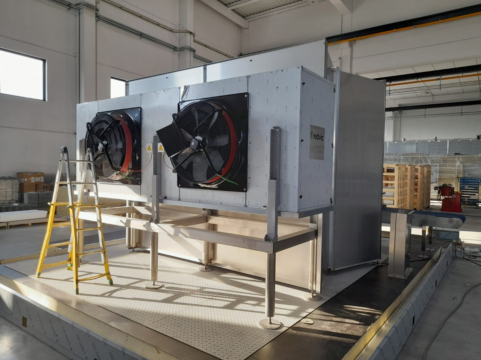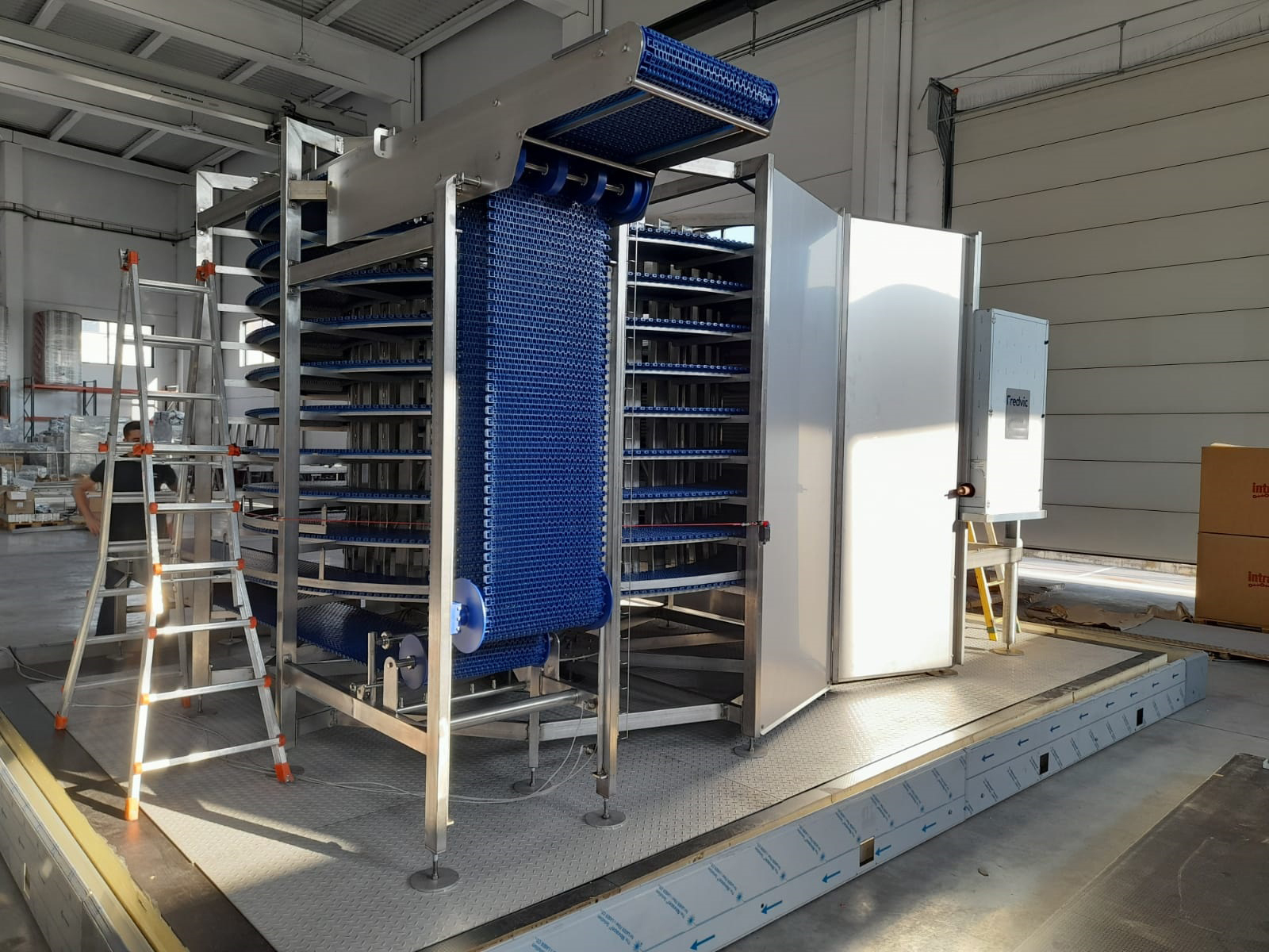 A les nostres instal·lacions estem realitzant el pre-muntatge per tal de garantir la màxima qualitat de l'equipament industrial i la seva posa en funcionament al país de destí. Aquest túnel ha de garantir un flux continu dels productes, amb un procés productiu uniforme i una qualitat constant.